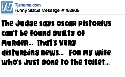 X says The judge says oscar pistorius can't be found guilty of murder... That's very disturbing news... For my wife who's just gone to the toilet...