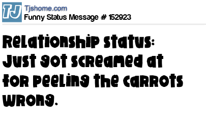 X Relationship status: Just got screamed at for peeling the carrots wrong.