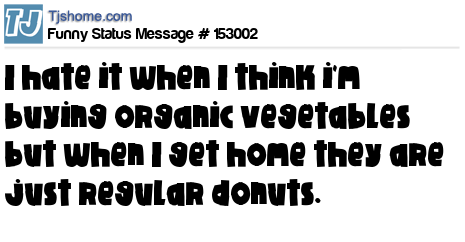 X I hate it when I think i'm buying organic vegetables but when I get home they are just regular donuts.