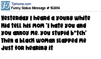 X says Yesterday I heard a young white kid tell his mom "I hate you and you annoy me, you stupid b*tch" Then a black woman slapped me just for hearing it