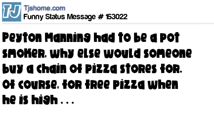 X says Peyton Manning had to be a pot smoker, why else would someone buy a chain of pizza stores for. Of course, for free pizza when he is high . . .