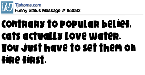 X says Contrary to popular belief, cats actually love water. You just have to set them on fire first.