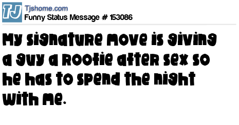 X says My signature move is giving a guy a roofie after sex so he has to spend the night with me.