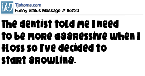 X says The dentist told me I need to be more aggressive when I floss so I've decided to start growling.