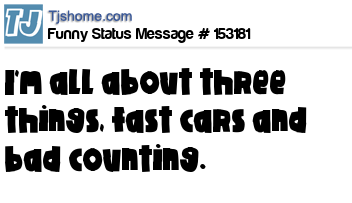 X says I'm all about three things, fast cars and bad counting.