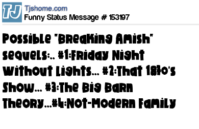 X Possible "Breaking Amish" sequels:.. #1:Friday Night Without Lights... #2:That 1870's Show... #3:The Big Barn Theory...#4:Not-Modern Family