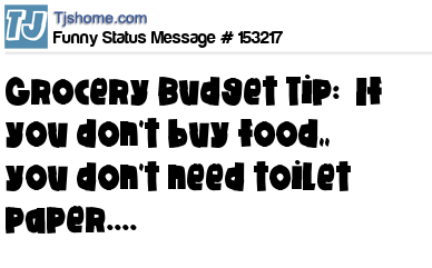 X  Grocery Budget Tip:  If you don't buy food,, you don't need toilet paper....