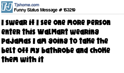 X says I swear if I see one more person enter this WalMart wearing pajamas I am going to take the belt off my bathrobe and choke them with it