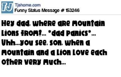 X Hey dad, where are mountain lions from?... *dad panics*... Uhh...you see, son, when a mountain and a lion love each other very much...