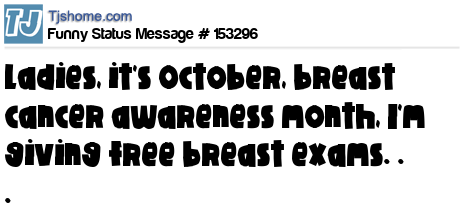 - # 137991 Ah, Breast Cancer Awareness Month. If you know you have boobs, go get checked. You too ladies.