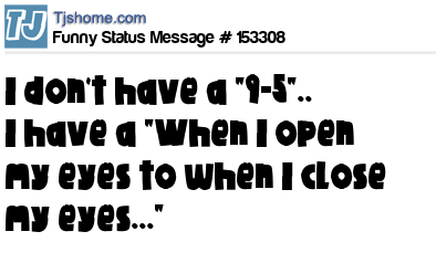 X says I don't have a "9-5".. I have a "When I open my eyes to when I close my eyes..."