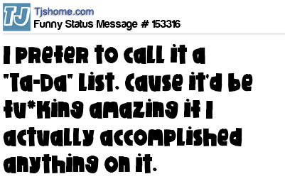 X says I prefer to call it a "Ta-Da" list. Cause it'd be fu*king amazing if I actually accomplished anything on it.