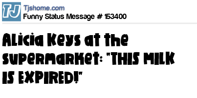 - # 133570 imagine Alicia Keys complaining in the grocery store, " THIS MILK IS EXPIIIIIIIIIIIRRRRRREEEEEEDD"