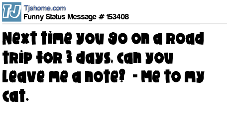 X says Next time you go on a road trip for 3 days, can you leave me a note? - Me to my cat.