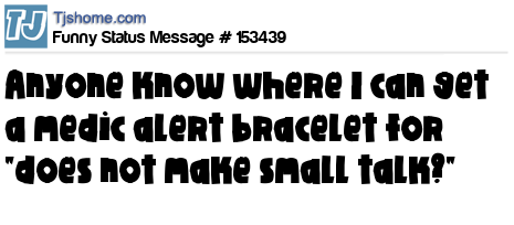 X says Anyone know where I can get a medic alert bracelet for "does not make small talk?"
