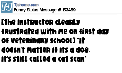 X says [the instructor clearly frustrated with me on first day of veterinary school] "It doesn't matter if its a dog, it's still called a cat scan"