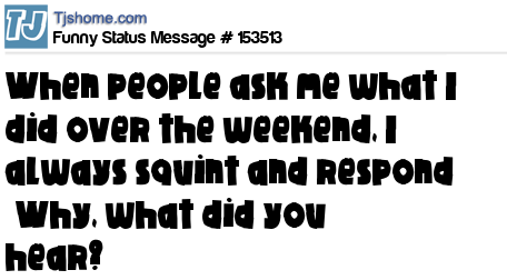 X says When people ask me what I did over the weekend, I always squint and respond “Why, what did you hear?”
