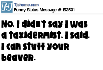 X No, I didn't say I was a taxidermist. I said, I can stuff your beaver.