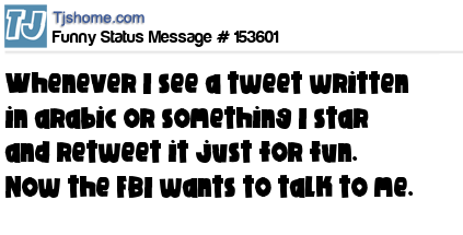 X says Whenever I see a tweet written in arabic or something I star and retweet it just for fun. Now the FBI wants to talk to me.