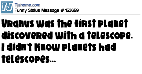 - # 46347 True fact of the day: On March 13, 1781 Uranus was discovered ........ ha ha Uranus