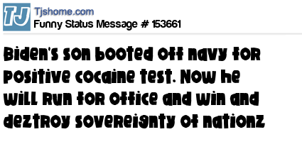 X says Biden's son booted off navy for positive cocaine test. Now he will run for office and win and deztroy sovereignty of nationz