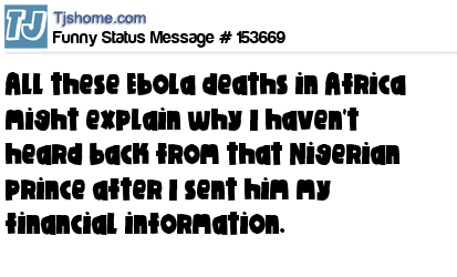 X says All these Ebola deaths in Africa might explain why I haven't heard back from that Nigerian prince after I sent him my financial information.