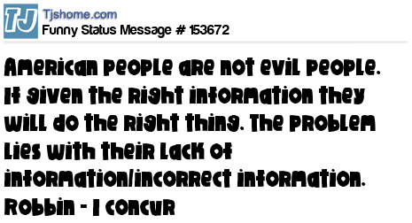 X says American people are not evil people. If given the right information they will do the right thing. The problem lies with their lack of information/incorrect information. Robbin - I concur