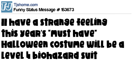 X  II have a strange feeling this year's "must have" Halloween costume will be a level 4 biohazard suit