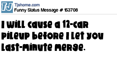 - # 209435 You'll hit every cone on the highway before I let you merge in front of me because you saw that sign two miles ago like I did.