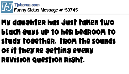 X says My daughter has just taken two black guys up to her bedroom to study together. From the sounds of it they're getting every revision question right.