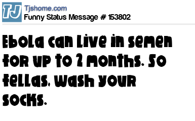 X says Ebola can live in semen for up to 2 months. So fellas, wash your socks.