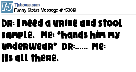 X says Dr: I need a urine and stool sample. Me: *hands him my underwear* Dr:...... Me: Its all there.