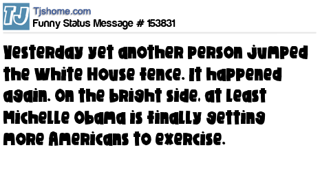 X says Yesterday yet another person jumped the White House fence. It happened again. On the bright side, at least Michelle Obama is finally getting more Americans to exercise.