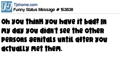 X says Oh you think you have it bad? In my day you didn't see the other persons genitals until after you actually met them.