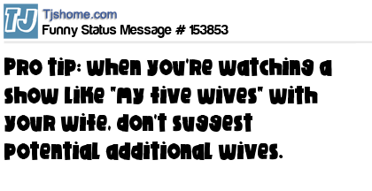 X says Pro tip: when you're watching a show like "my five wives" with your wife, don't suggest potential additional wives.
