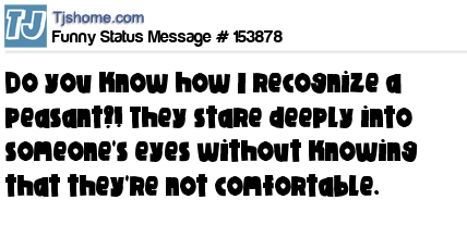 X Do you know how I recognize a peasant?! They stare deeply into someone's eyes without knowing that they're not comfortable.