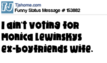 X says I ain't voting for Monica Lewinskys ex-boyfriends wife.