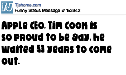 - # 153943 CEO of Apple Tim Cook annouces he's gay... Awaiting Samsung press conference announcing that they're waayyyyy more gay