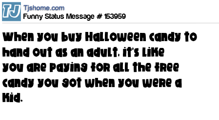 - # 180889 Buying Halloween candy to hand out as an adult, is like paying back for all the free Halloween candy I got when I was a kid.