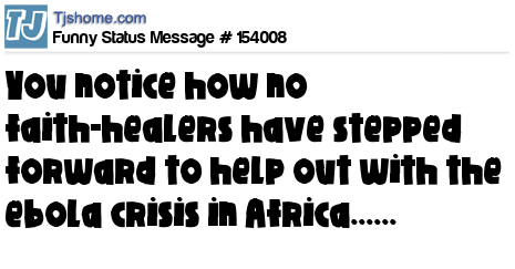 X  You notice how no faith-healers have stepped forward to help out with the ebola crisis in Africa......
