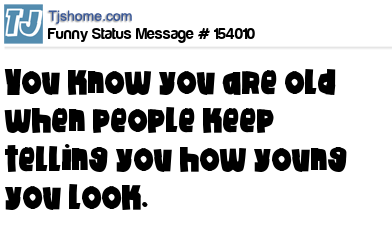 - # 138771 You know you are getting old when people keep telling you how young you look.