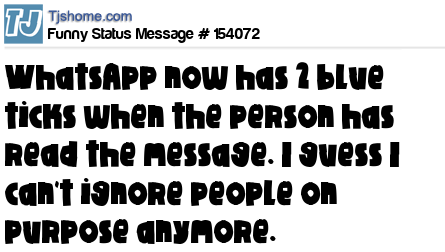 X says WhatsApp now has 2 blue ticks when the person has read the message. I guess I can't ignore people on purpose anymore.