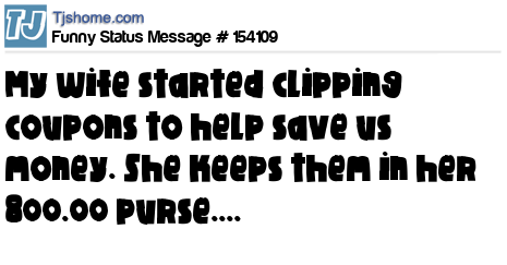 - # 154112 My wife started clipping coupons to help save us money. She keeps them in her $3,000 Louis Vuitton purse....
