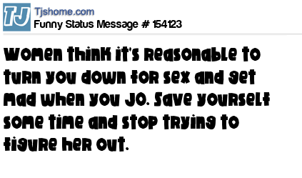 X Women think it's reasonable to turn you down for sex and get mad when you JO. Save yourself some time and stop trying to figure her out.