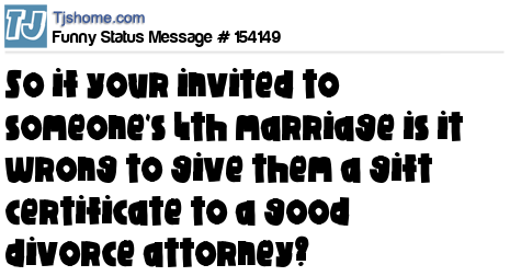 X So if your invited to someone's 4th marriage is it wrong to give them a gift certificate to a good divorce attorney?