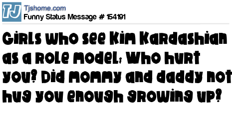 X says Girls who see Kim Kardashian as a role model; Who hurt you? Did mommy and daddy not hug you enough growing up?