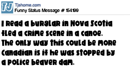 X says I read a burglar in Nova Scotia fled a crime scene in a canoe. The only way this could be more Canadian is if he was stopped by a police beaver dam.