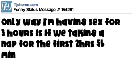 X says Only way I'm having sex for 3 hours is if we taking a nap for the first 2hrs 56 min