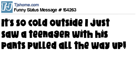 X It's so cold outside I just saw a teenager with his pants pulled all the way up!