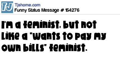 X says I'm a feminist, but not like a "wants to pay my own bills" feminist.